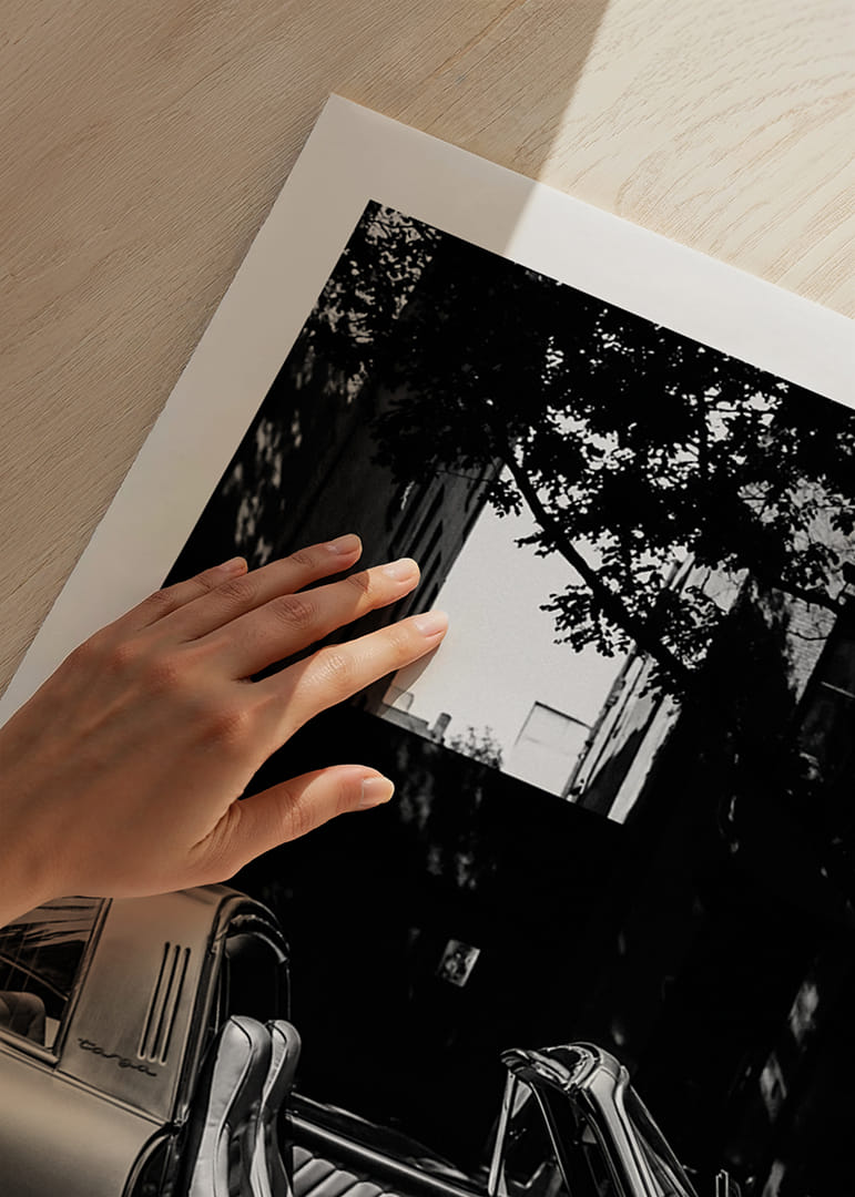 Piedzīvojiet mūžīgu ceļojumu ar šo plakātu, kurā attēlots Porsche 911 gleznainā melnbaltā motīvā. Attēls iemūžina automašīnas ikonisko eleganci un izsmalcināto sajūtu, ko spēj paust tikai klasika. Atvērtās durvis un redzamais salons aicina sapņot par brīvību, piedzīvojumiem un gariem ceļiem aiz horizonta. Lielisks plakāts, kas piešķirs jūsu mājām retro šika pieskārienu un uzlabos telpas atmosfēru ar stilu un raksturu.