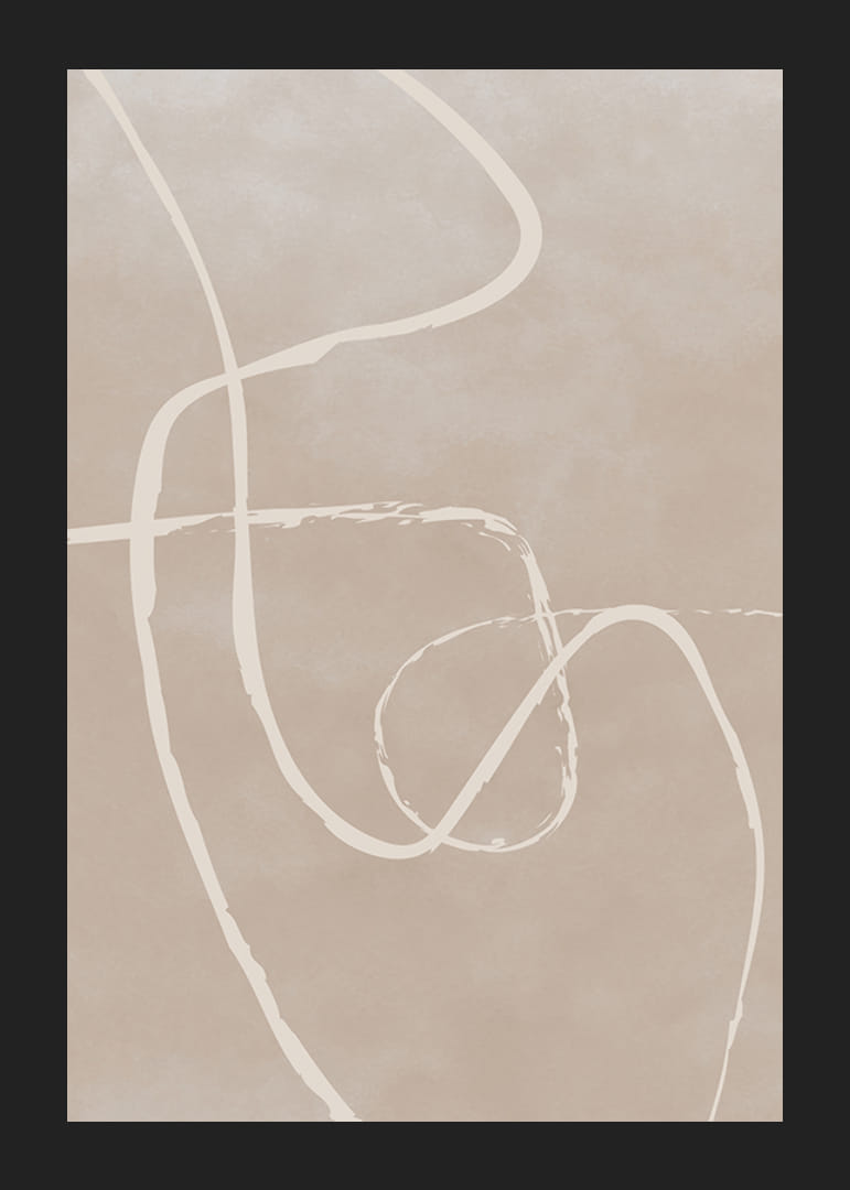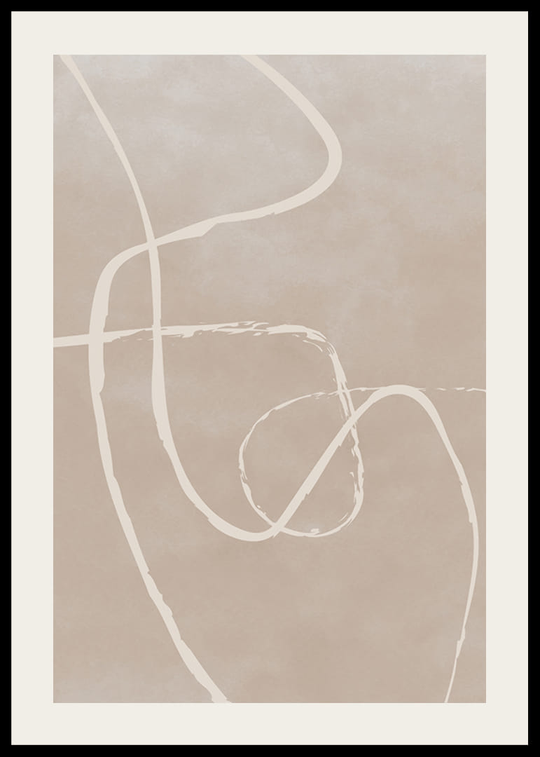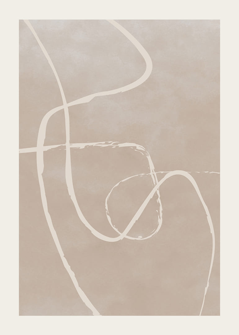 Maigas, izliektas gaiši bēšas līnijas brīvi virzās pāri smilšu krāsas, viegli teksturētam fonam. Minimālistiskā kompozīcija rada gaisīgu un modernu iespaidu. Ar savu neuzbāzīgo stilu šis plakāts ir diskrēts un stilīgs papildinājums gan dzīvojamām istabām, gan darba videi.