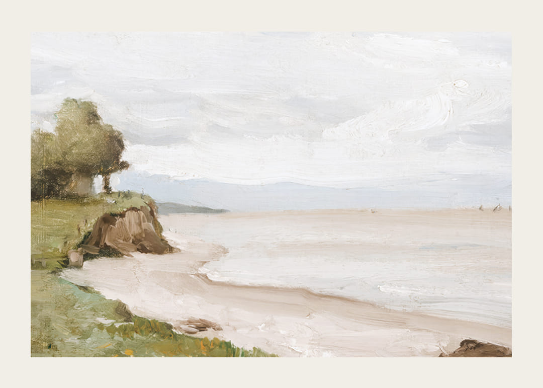 Plakāts no kategorijas vēsturiskā māksla ar franču mākslinieka Žana Batista Kamila Koro gleznu "Pludmale pie Etretas" no 1872. gada.