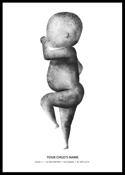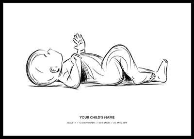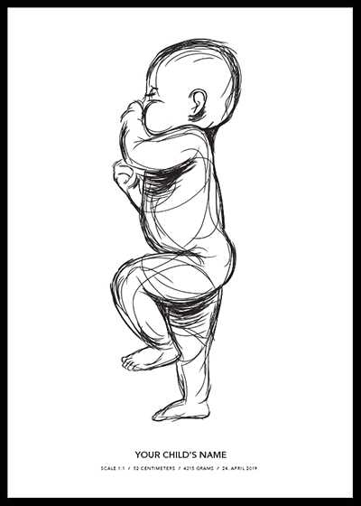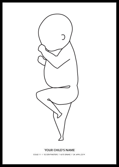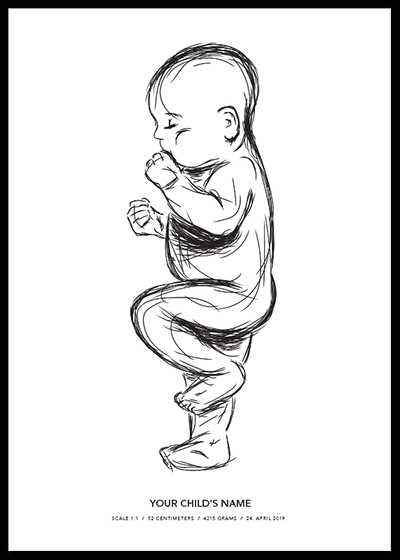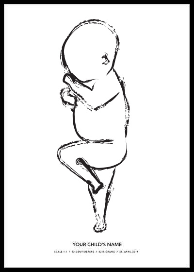 Izvēlieties, kura no mūsu skaistajām dzimšanas plakāta ilustrācijām atspoguļos jūsu bērnu piedzimšanas brīdī. Radiet jūsu unikālo dzimšanas plakātu, izvēloties rāmi, teksta saturu, dzimšanas datus un krāsu. Pievienojot mazuļa garumu dzimšanas brīdī, skicei mainīsim izmēru, un tā tiks nodrukāta mērogā 1:1, atbilstoši patiesajam izmēram. Visiem dzimšanas plakātiem ir viens izmērs - 50x70 cm. Kopā ar bērna vārdu varat pievienot arī dzimšanas laiku, datumu, svaru un personisku sveicienu, padarot dzimšanas plakātu unikālu. Personisks apsveikums būs laba dāvana, ja dzimšanas plakāts tiek uzdāvināts kristībās vai dzimšanas dienā. To pašu teksta rindu var izmantot arī jebkuram citam pielāgojamam tekstam. Varat pievienot pilsētu un slimnīcu, kurā bērns ir dzimis. Iespējas ir bezgalīgas, un izvēle ir jūsu!